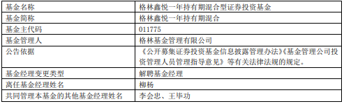 中国经济网北京9月29日讯 近日,格林基金公告,柳杨离任格林泓卓利率债、格林泓利增强债券、格林聚合增强债券、格林泓旭利率债、格林泓景债券、格林中短债、格林泓皓纯债、格林泓盛一年定开债券发起式、格林鑫悦一年持有期混合。